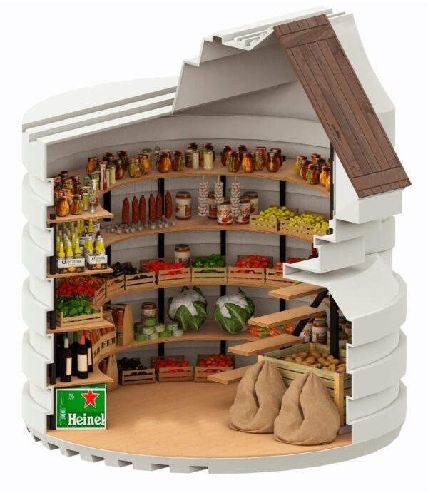 Korpuss izgatavots no polietilēna,tas ir piemērots saskarei ar pārtikas produktiem.Pagrabam ir iebūvēts metāla karkass ar plauktu sistēmu,ieplūdes un izplūdes ventilācija.Temperatūras saglabāšanai nav nepiecišama elektrība. Pagrabam ir LED apgaismojums ar bateriju un termometrs ar hidrometru mitruma mērīšanai.
